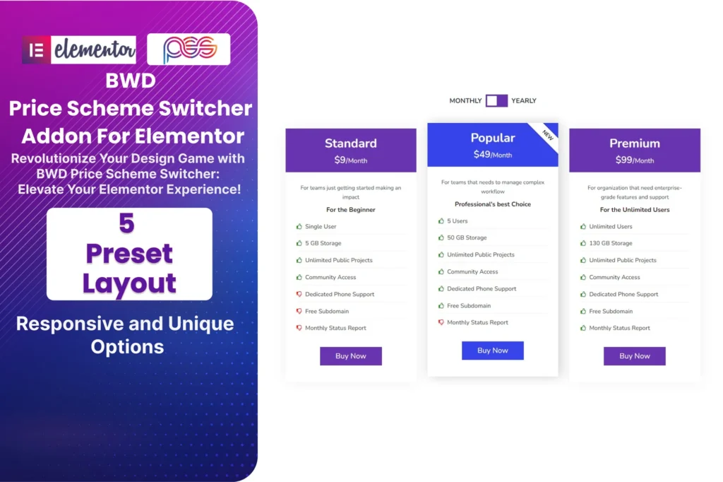 Pricing Scheme Switcher Addon For Elementor